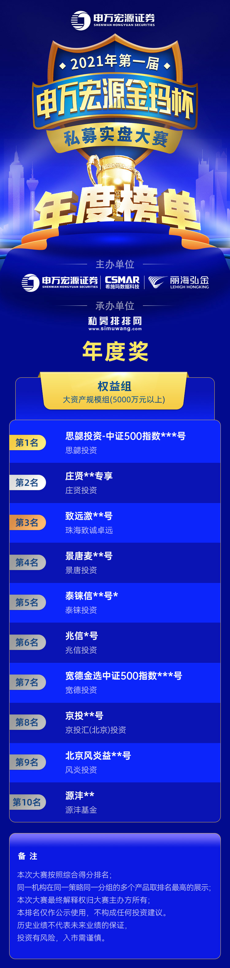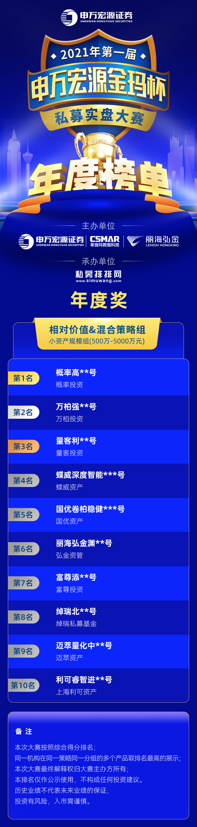 由申万宏源证券与深圳NO钱包官网数据、丽海弘金联合主办,私募排排网承办的第一届申万宏源“金玛杯”私募实盘大赛于2021年6月正式拉开帷幕。本次大赛旨在依托申万宏源内外资源的整合优势,发掘优质的私募管理人,让优质管理人一次性进入全体系平台观察视野,为私募组织给予一体化解决方案。