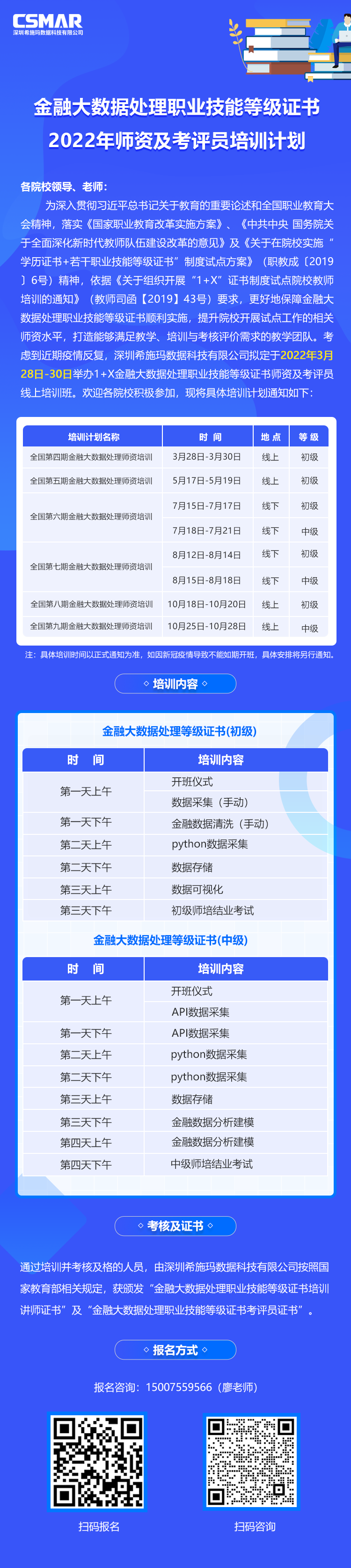 金融大数据处理职业技能等级证书2022年师资及考评员培训计划
